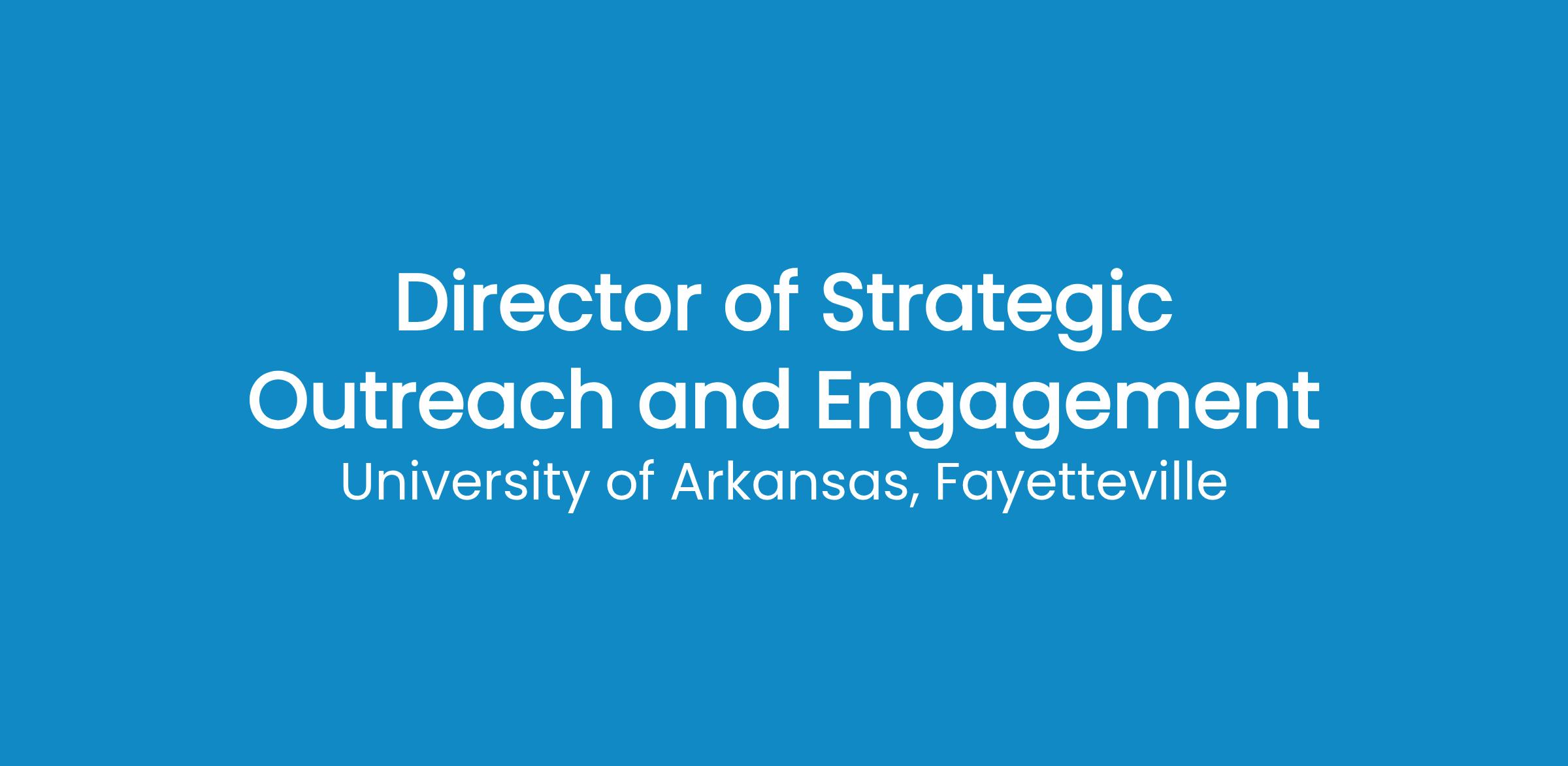 The University of Arkansas is an equal opportunity institution. The University does not discriminate in its education programs or activities (including in admission and employment) on the basis of any category or status protected by law, including age, race, color, national origin, disability, religion, protected veteran status, military service, genetic information, sex, sexual preference, or pregnancy. Questions or concerns about the application of Title IX, which prohibits discrimination on the basis of sex, may be sent to the University’s Title IX Coordinator and to the U.S. Department of Education Office for Civil Rights.Persons must have proof of legal authority to work in the United States on the first day of employment.