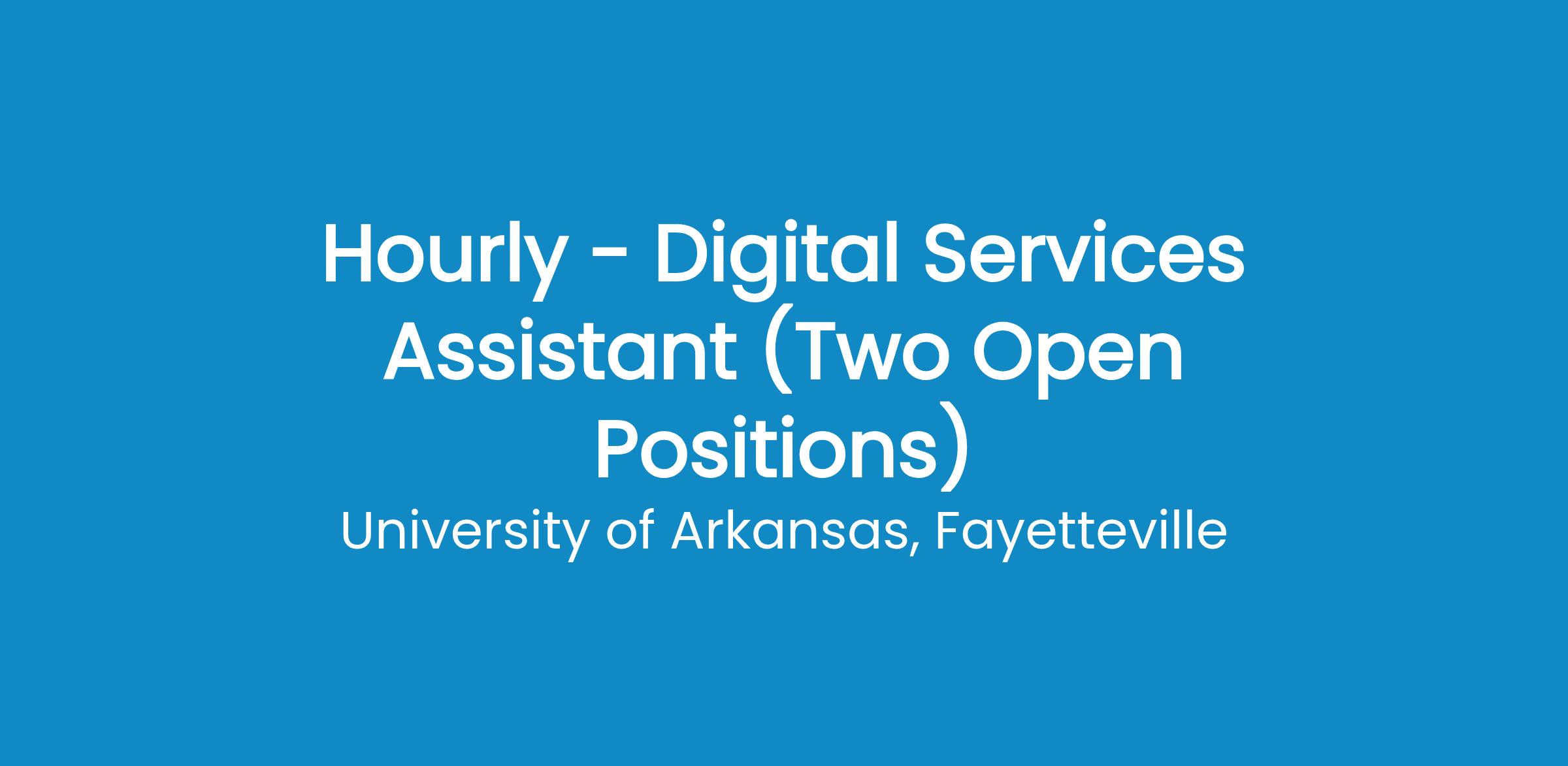 The University of Arkansas is an equal opportunity institution. The University does not discriminate in its education programs or activities (including in admission and employment) on the basis of any category or status protected by law, including age, race, color, national origin, disability, religion, protected veteran status, military service, genetic information, sex, sexual orientation, or pregnancy. Questions or concerns about the application of Title IX, which prohibits discrimination on the basis of sex, may be sent to the University’s Title IX Coordinator and to the U.S. Department of Education Office for Civil Rights.Persons must have proof of legal authority to work in the United States on the first day of employment.