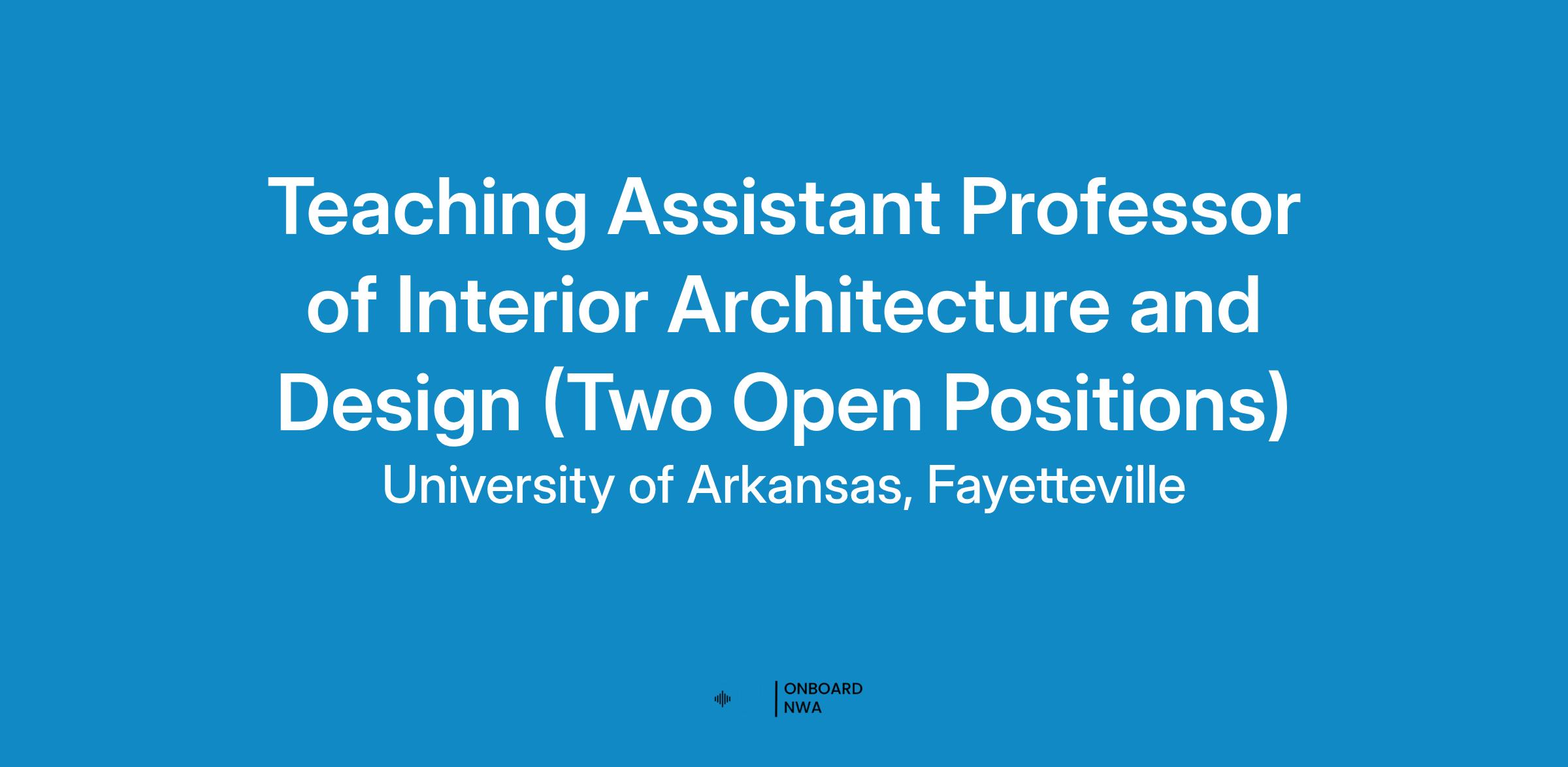 The Department of Interior Architecture and Design at the Fay Jones School of Architecture and Design, University of Arkansas, seeks an individual interested in leading innovative and transdisciplinary approaches to teaching. The successful candidate will join a vibrant team of faculty in a department growing in stature and national recognition to forge a rich culture of thinking and making within the existing professional undergraduate curriculum.